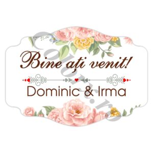 Întâmpinați invitații cu un mesaj special, personalizat exact așa cum vă doriți. Plăcuța este realizată din PVC de calitate, cu imprimare UV, pentru culori intense, durabile și un aspect elegant, ideal pentru evenimente deosebite precum nunta.
