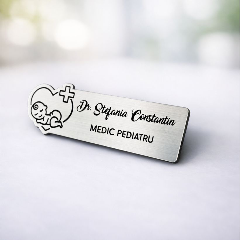 Realizate din material plastic de calitate superioară, în dublu strat, ecusoanele beneficiază de o acoperire rezistentă integrată. Finisajul periat al suprafeței oferă protecție sporită împotriva umezelii, amprentelor și uzurii zilnice. Materia prima este fabricată în SUA, fiind gravat permanent, asigurând un aspect elegant, durabil și o lizibilitate de lungă durată.